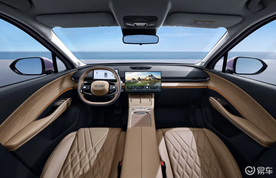 内饰采用环抱式座舱与琥珀棕轻奢配色,大面积软质包覆提升质感。车内搭载大尺寸滑移中控屏,搭配电子怀挡与256色音律氛围灯,科技氛围直接拉满。新车还配备前排座椅通风/加热、无线充电、自动紧急制动、疲劳驾驶提醒等配置,兼顾舒适与安全,家用、通勤都足够体面。