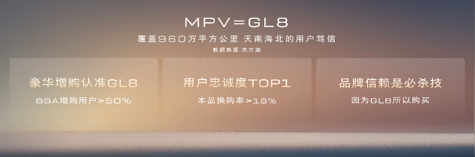 根据杰兰路统计数据显示,别克GL8家族本品换购率高达19%,在品牌换购来源中占比第一;在增换购用户中,超过一半来自豪华品牌车主;用户购车时最看重的品牌背书,GL8位居首位。正因如此,别克GL8家族不仅是MPV品类的开创者,更成为用户心中“买MPV就买GL8”的统一认知。从开创者到引领者,别克用27年的确定性,将MPV产品价值沉淀为品牌信仰。