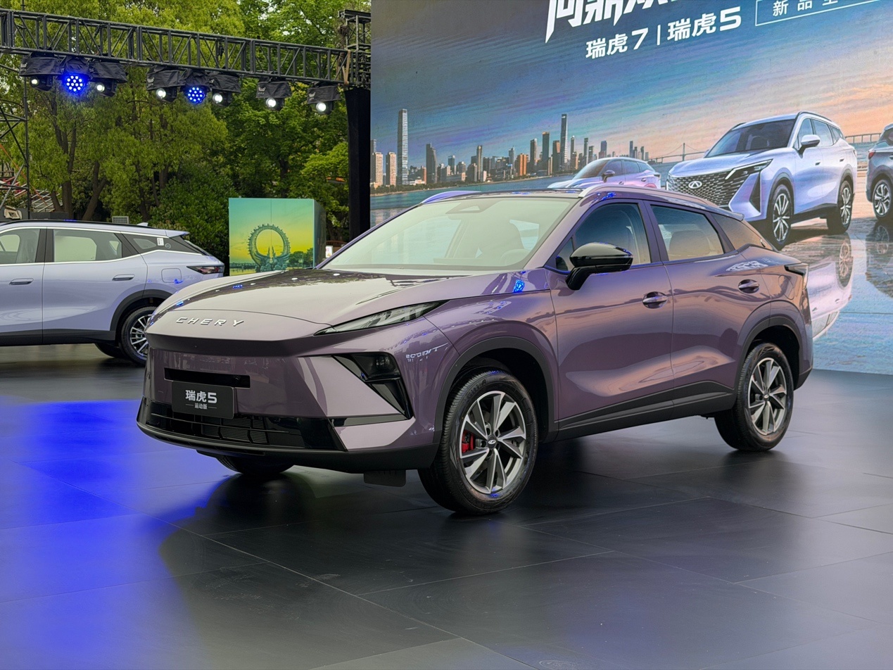 瑞虎5运动版在外形设计上,与瑞虎家族其它车型的设计相差较大,有种偏新能源车的设计,车头采用了很凌厉的造型,大量硬线条向车头汇聚,LED 远近光灯与三角形导风槽融为一体,外侧有凌厉线条勾勒,整体的设计都是在往年轻运动靠拢,外观颜色上,新车提供两款专属配色紫定行和蓝波万,此外还有三款常规色(珍珠白、钻石黑、量子黑)。