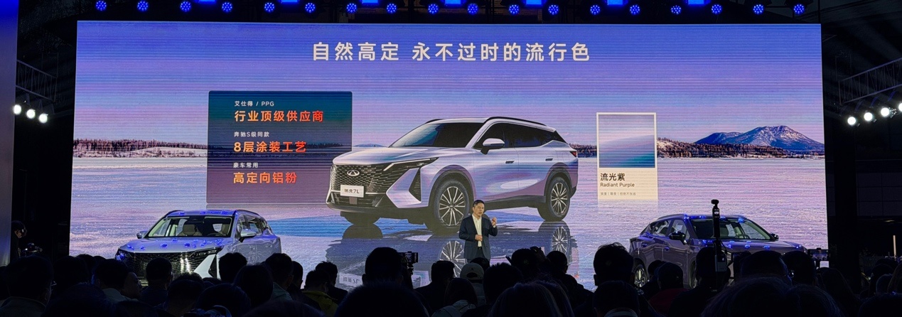 外观方面,瑞虎7L采用瑞虎家族“自然力量美学”的设计语言,整个前脸呈现出V字型的样式,点阵式的大尺寸中网,搭配左右两侧导风槽的装饰,让整个车头显得运动感十足,大灯采用了熏黑的处理,与中网融为一体。外观颜色上,新车提供一款专属色流光紫,以及五款常规配色(珍珠白、月光银、深空灰、石墨黑、磨砂灰)。