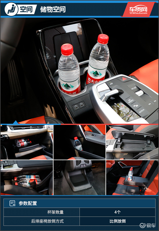 储物空间方面,评测车提供了4个杯架,可以很好地满足车内乘客的使用需求。此外,除了常规的储物空间,中控台为分层悬浮式结构,前方设置了一个手机槽,拿放手机十分顺手,并且还兼具无线充电功能;下方为开放式储物槽,能够放置手提包等大件物品,颇为实用。