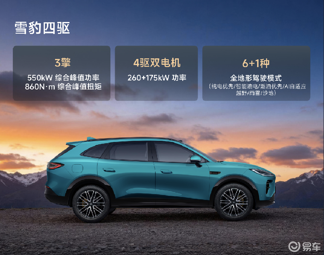 而底盘驾控方面也很给力,采用前麦弗逊+后全铝H臂四连杆独立悬架,还有CDC电磁悬挂,软硬自动调节,过减速带、坑洼路面时滤震明显;高速变道、转弯时,车身稳。再加上DP-EPS双小齿轮电动转向、雪豹智能四驱以及6+1种全地形驾驶模式,哪怕是面对沙地、泥地、山地等非铺装路面或雨雪湿滑路面,依旧能保持稳定行驶姿态。