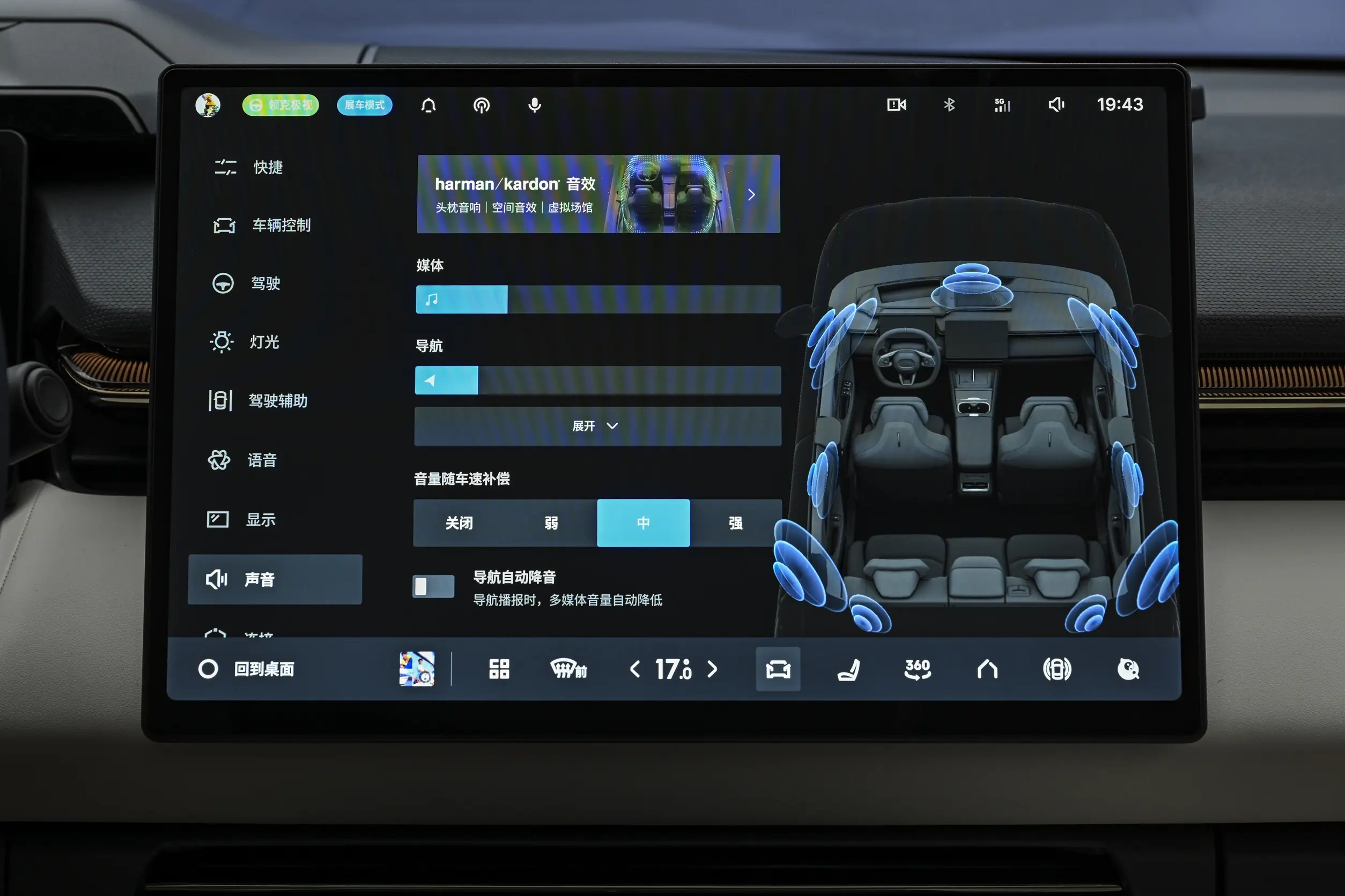 进入到驾驶舱,领克08 EM-P并不是现在比较常见的环绕式,而是在保持简洁布局的同时,通过中控、门板等区域的上下层撞色与结构性分层,让座舱看上去较为立体一些。同时,三辐式方向盘的D型设计依旧是偏向于个性运动的一面,按键式车门锁、隐藏式氛围灯,还有全系标准化的23扬声器立体环绕声音响,这些设计与配置放在当下不说是多出彩的加分项,但也能把领克08 EM-P的标配档次维持在一个比较高的水平线上。