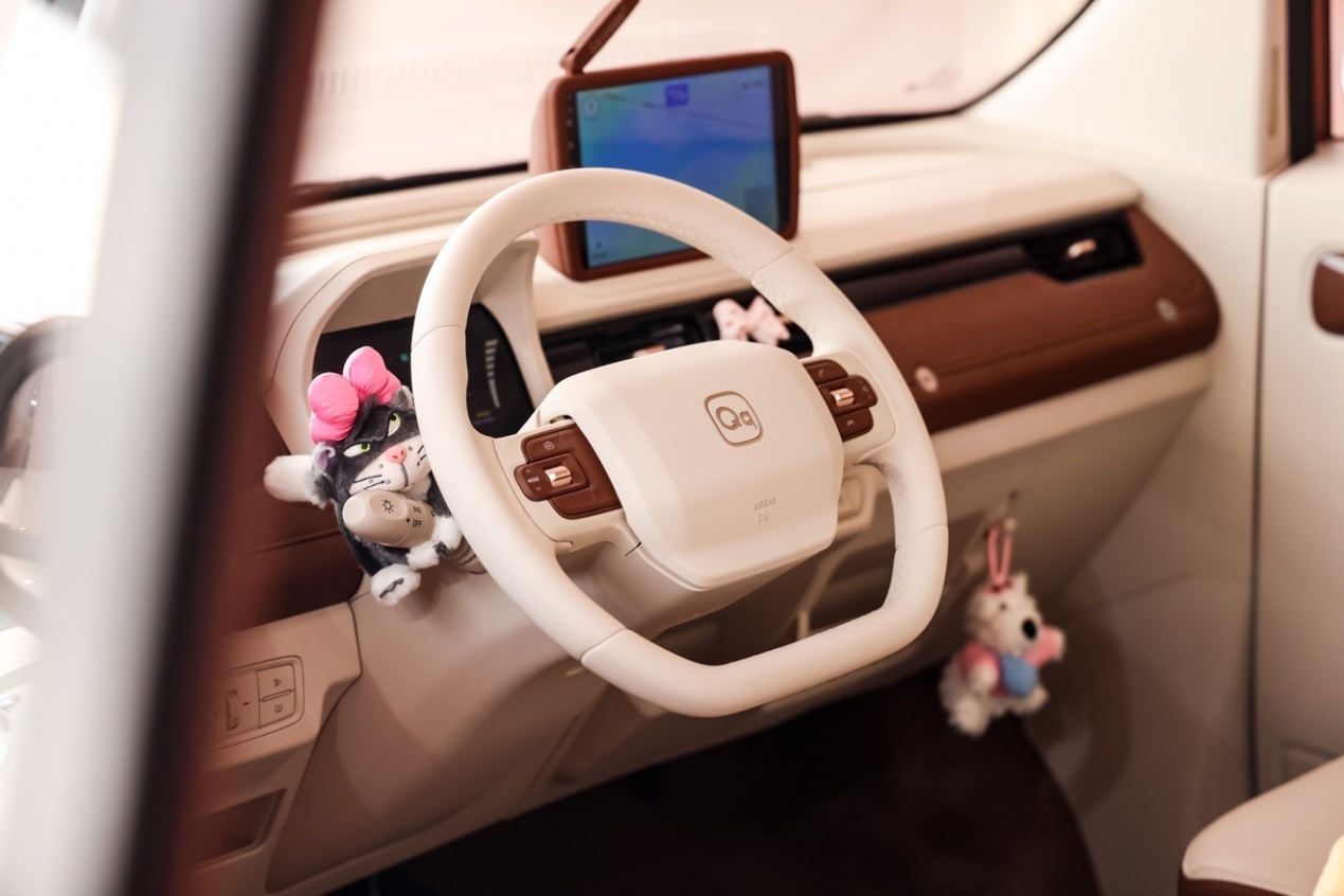 同时,26款QQ冰淇淋还配置了同级唯一的皮质多功能方向盘、主驾补光化妆镜、可拓展3个1/4螺纹接口(可连接手机支架、运动相机等,激发年轻人出行生活的小创意),Easy-Entry座椅礼让功能也非常便利(可一键增宽后座入口,方便同伴进出),以及可拓展行李架与小书包等配置,丰富的原厂生态支持“千人千车”深度定制。