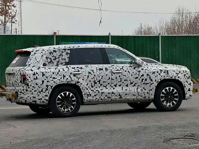 从谍照能看出来,坦克800的气场是真足。车身比坦克700还大一圈,长度估计超5.2米,方正魁梧的造型延续了坦克家族的硬派基因,但没走激进的机甲风,反而更偏向坦克500那种沉稳的豪华越野范儿。直瀑式的前脸格栅搭配方中带圆的大灯,有点“天圆地方”的中式设计感,不怒自威的样子确实对得起“保定库里南”的戏称。宽宽的轮眉和高高的离地间隙,一眼就能看出是带越野底子的硬家伙。