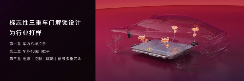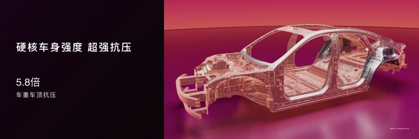 安全方面,新车采用十三横五纵车身架构,高强钢与铝合金占比91%,14处核心骨架使用2000MPa热成型钢,车顶可承受5.8倍车重压力。车门采用三重解锁冗余设计,保障极端情况下可正常开启。