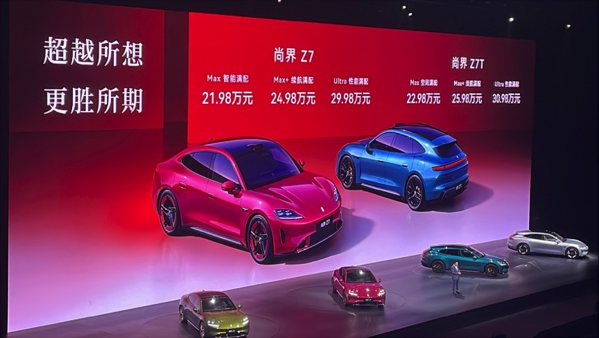 售价方面,尚界Z7提供21.98万元、24.98万元、29.98万元三档;尚界Z7T为22.98万元、25.98万元、30.98万元。